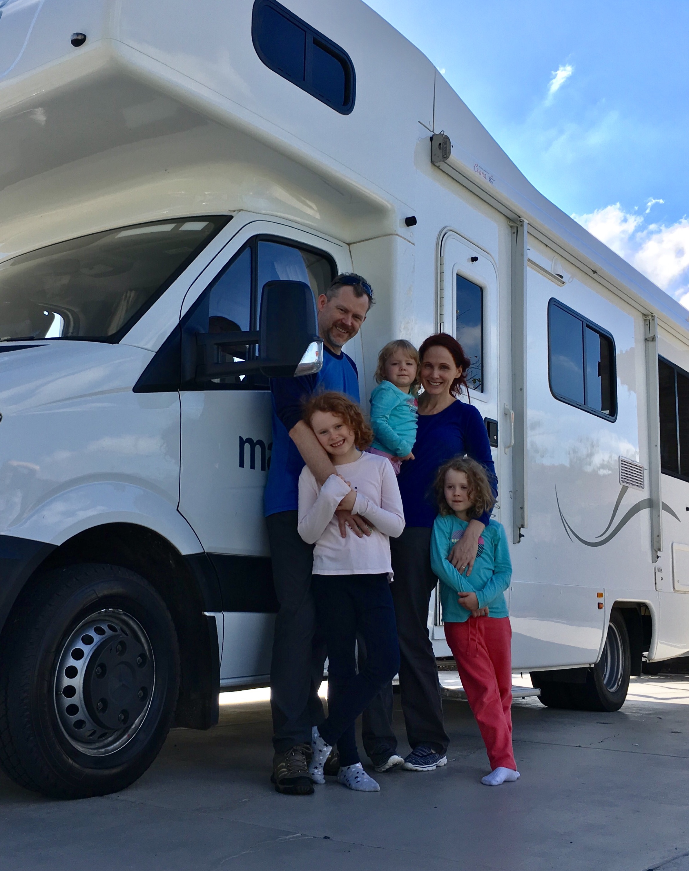 After such a wonderful visit we were sad to say goodbye to the Hunts. The excitement of our adventure ahead helped distract us and after the hire place (eventually!) opened, Jonathon brought us our home on wheels and we set it up by putting things away in tiny spaces. The girls were so excited 🙂 We waved goodbye to Bon and John and we were off!