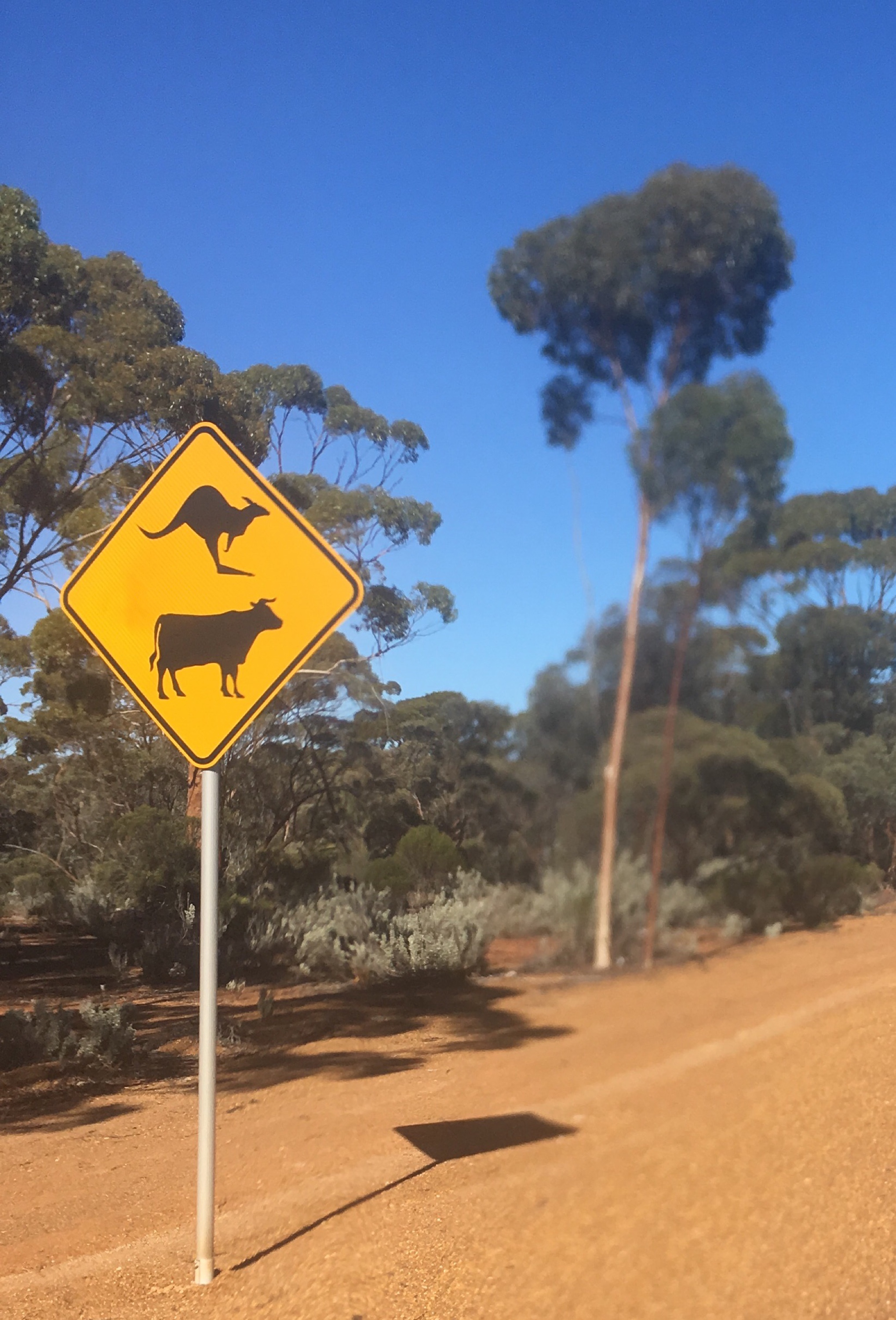We see this sign a lot Posted on June 9, 2017 by jemilani There’s also one for emu and wild brumbies. But I can never get the camera out fast enough! Share this: Share on X (Opens in new window) X Share on Facebook (Opens in new window) Facebook Like Loading...