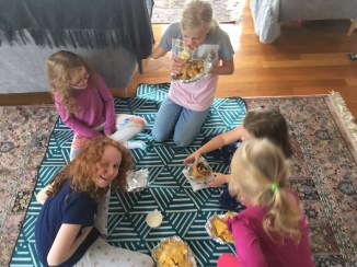 Grandma Susie thought this would help us stay together at the airport. It sure did on the way over! The girls got to choose their own color of hand-hold. We might just use it on the way back tomorrow! Yesterday was a lovely day with Aunty Bon coming down for about half the day. She was wonderful company and a big blessing as there were a few pre-departure errands to run and she kept the girls thoroughly happy.