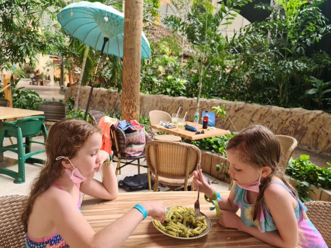 From a lurgy perspective, Tropical Islands possibly wasn’t the best idea, given that a warm, moist, indoor environment plays host to such as the one we are all trying to avoid at the moment… but from the girls’ perspective, it was definitely a great idea – and, hey! It looks like it’s outdoors, so as long as everyone wears a mask unless eating or swimming then we should be fine! (What’s that you say? We were eating or swimming 97% of the time?).