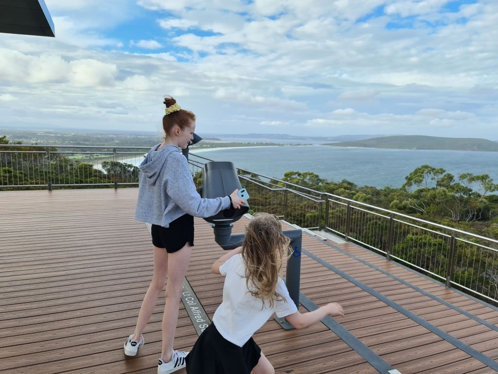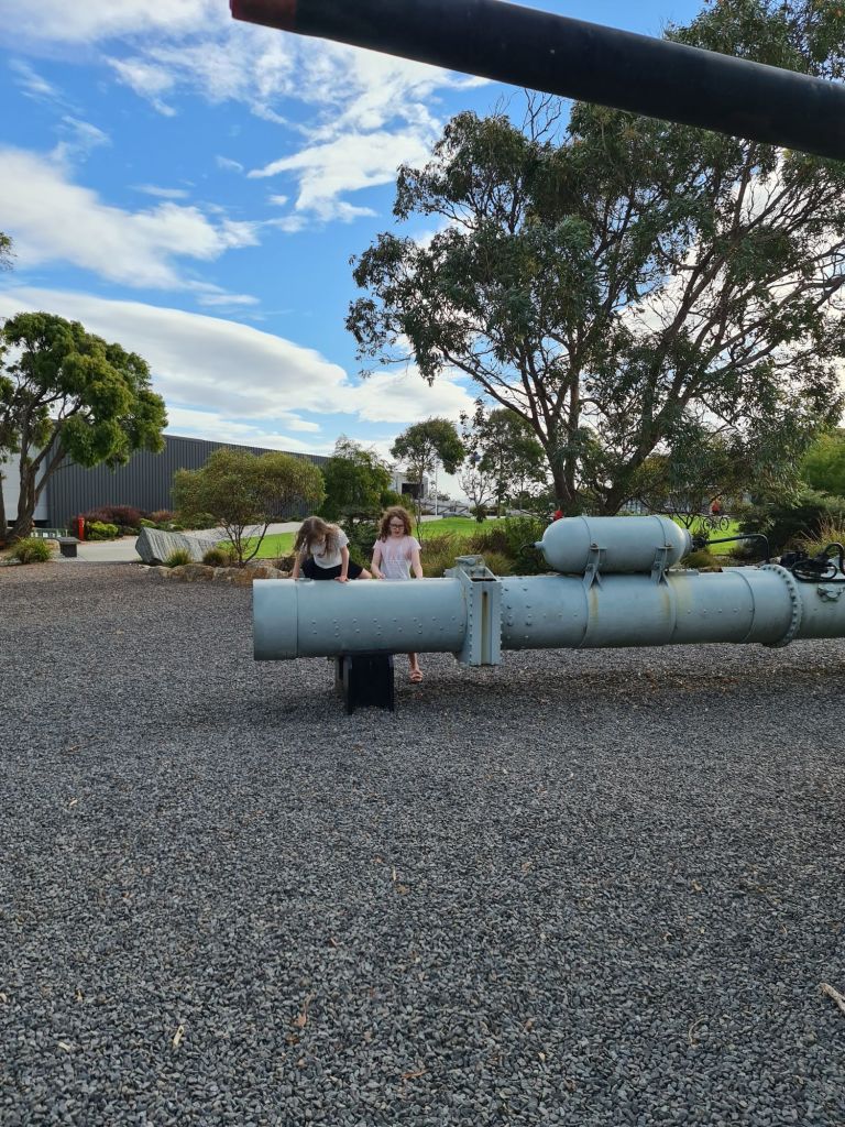 Yum! Mum’s favourite! While the girls waited they made the most of the playground-with-a-view…
