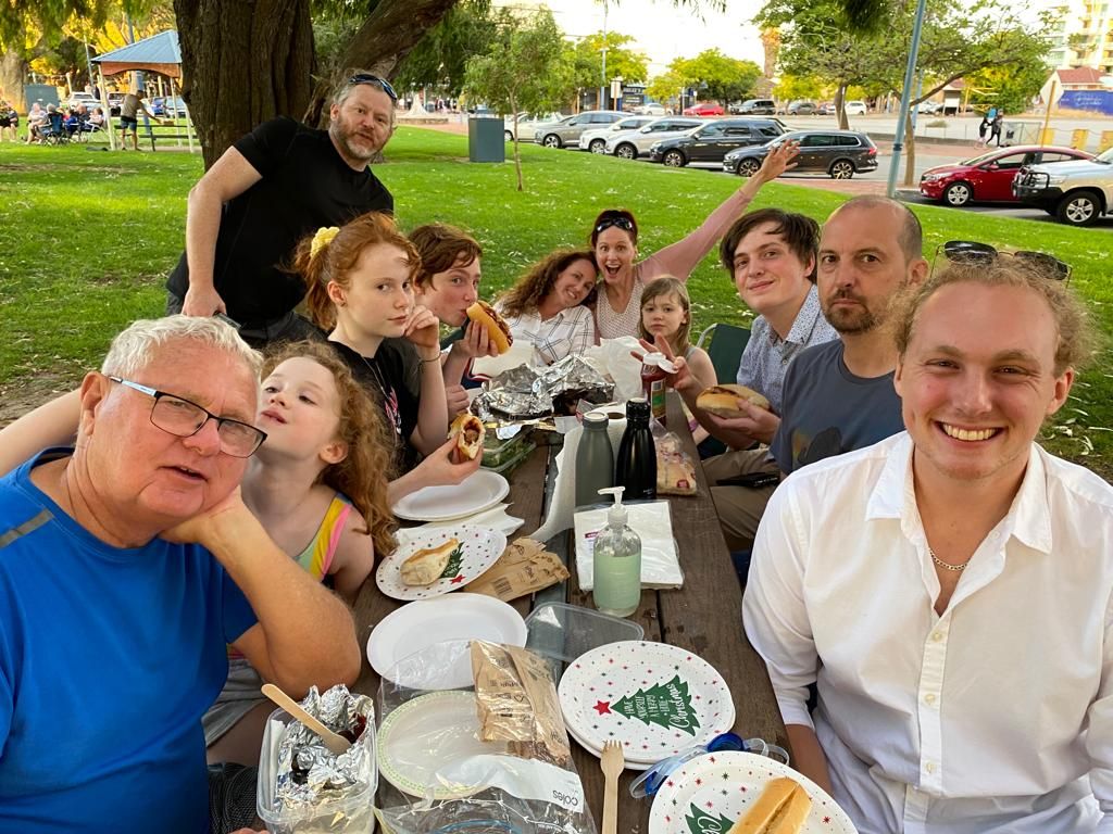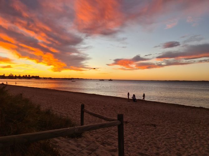All the grandies for breakfast at the house we are staying in at Rockingham, then the Hunts came, the girls a trip to the shops with Aunty Bon and their cousins, and finally a picnic plus sunset followed!