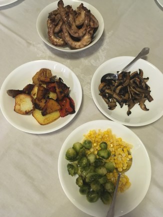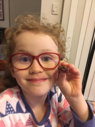 Brussels sprouts were not enthusiastically received, pumpkin and red caps wasn’t touched, and chicken necks sounded like a great idea but it was only really Mama and Emily who ate them. Stewed apples, rhubarb and strawberry with cream for dessert. That went down a little better.