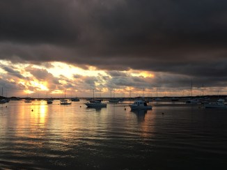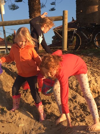 Itβs so beautiful down on the beach. The air is so cool and fresh. The scenery is always changing with the weather, and there are often boats coming and going. Some fishermen had a tiny dog that loves children and was adored by Lani. All three girls ran off up the beach with it after the poor thing fell in the water jumping from boat to jetty, so he needed a run to get dry again.