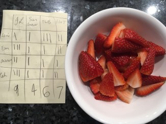 We bought four different farms’ strawberries and gave each a maximum score of 3. We had a winner!