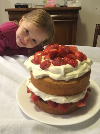 We made a ‘strawberry cake’ to celebrate with Grandma and Granddad tonight. Dada joined us via Skype and felt rather hungry!