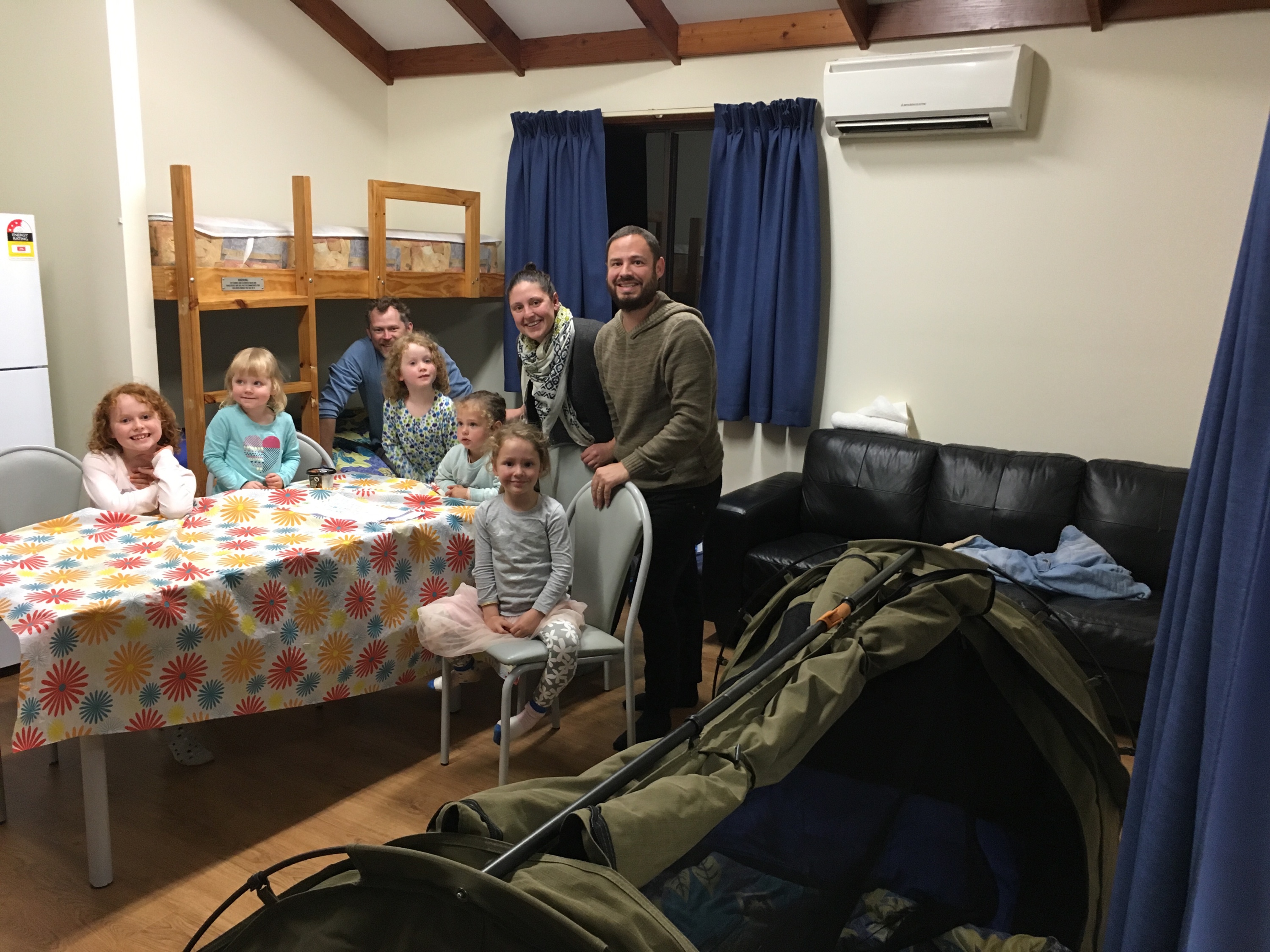 Jemima and Lani in the swag, Emily in the bottom bunk, Mama in the double bed